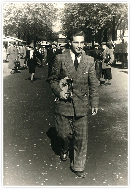 Der Messestand von Bernhard Koziol im Jahre 1948 in Frankfurt.